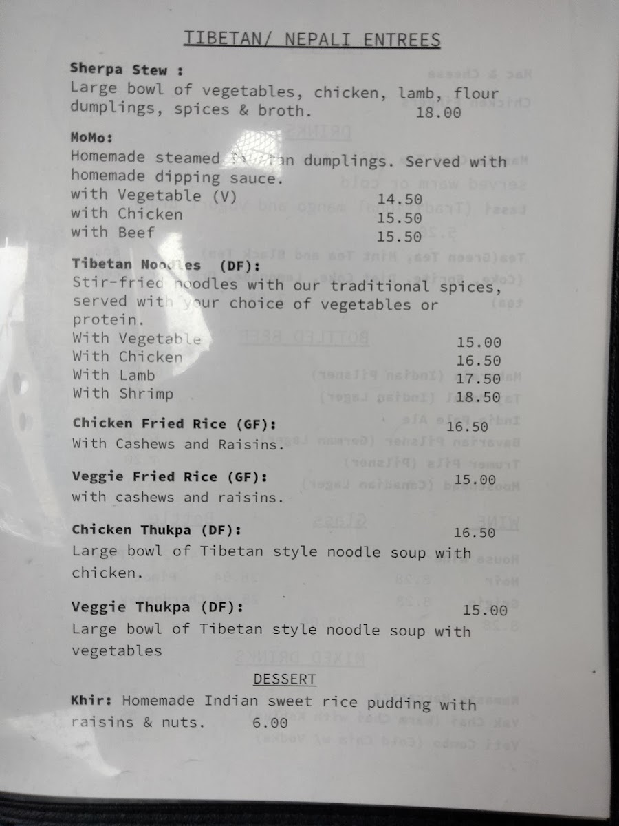 “ The food and atmosphere was very authentic. The Sherpa stew was filling and plentiful. This isn’t the place to come if you are in a hurry though. It is a sit down and enjoy your evening kind of place. Also make sure to save room for the rice pudding. ”